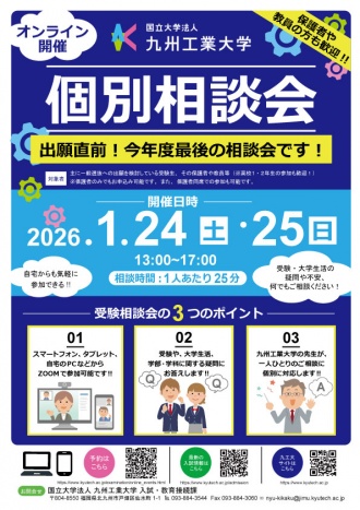 ?受験相談会では、九州工業大学への受験を検討中の皆さまからの質問に、本学の教員が個別にお答えします。